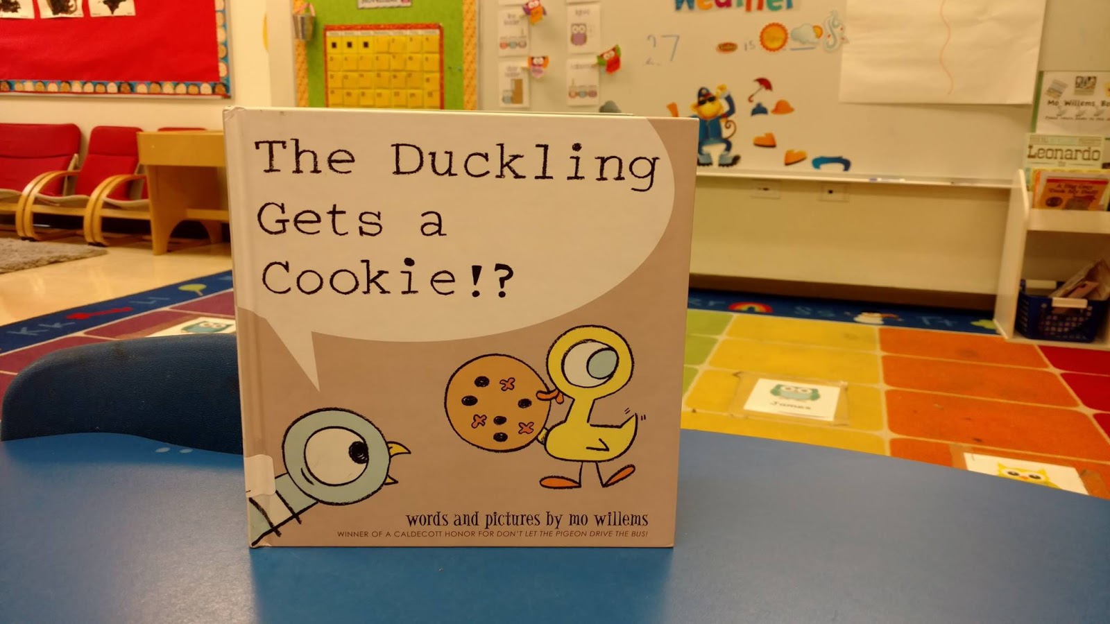 In the book, The Duckling Gets a Cookie, Duckling acts as a clever and calming conscience for the impulse-driven Pigeon. With a subtle touch, Duckling helps Pigeon learn that asking politely for things is much more effective than aggressively demanding them! After reading the story, we discussed the main idea and practiced asking nicely for things around the room. During centers, the Pre-K kids made their own cookie craft working on fine motor skills and creativity.